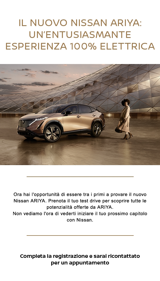 Concessionaria # Seleziona concessionario (AG) RN MOTORS Via Unita' di Italia snc AGRIGENTO (AL) - RESICAR Via Clemente 41 SPINETTA MARENGO (AN) - CONERO CAR Strada Statale 16 - KM. 309,600 CAMERANO (AP) - EMIL AUTOS Via della Liberazione, 110 SAN BENEDETTO DEL TRONTO (AR) - TOSONI AUTO Via Luigi Galvani, 14 AREZZO (AT) - ERREBI C.so Alessandria, 561 ASTI (AV) - AUTOMASTER Via Nazionale Torrette, 122 MERCOGLIANO (BA) - PICCA MOTORS S. S. 96 - KM 119, 500 MODUGNO (BG) - GRUPPO CARMELI Via Dalmine, 2 CURNO (BI) - AUTOVAR Via Galimberti Tancredi, 3 BIELLA (BL) - GIDALCAR Via Tiziano Vecellio, 14 BELLUNO (BO) - ALMA Via Emilia, 295 SAN LAZZARO DI SAVENA (BO) - ALMA Via Zanardi, 39 BOLOGNA (BO) - ALMA Via Selice, 185/A IMOLA (BR) - FIVE MOTORS Via Enrico Fermi, 5/D - Zona Industriale BRINDISI (BS) - GRUPPO CARMELI Via Diaz, 22 SAN ZENO NAVIGLIO (BS) - VICTORIA Via Vallecamonica, 2 BRESCIA (BT) - PICCA MOTORS Via Trani, 316 BARLETTA (CA) - DE CARROZ Via dei Carroz, 4 CAGLIARI (CB) - PASQUARELLI Via Arturo Giovannitti, 10 CAMPOBASSO (CE) - AUTOCASERTA S.S. Sannitica, 265 - Km 27+400 MARCIANISE (CH) - PASQUARELLI Via Piane S.Angelo, 202 S.SALVO (CN) - AUTO MATTIAUDA Via Torino, 381 CUNEO (CN) - ERREBI Corso Asti, angolo strada Porini snc ALBA (CO) - CLERICI AUTO Via Tentorio, 11 COMO (CO) - CLERICI AUTO Via Piemonte, 3 - Loc. Mirabello CANTU' (CR) - NINI CAR Via Degli Artigiani, 1/3 VAIANO CREMASCO (CR) - GRUPPO CARMELI Via Milano, 18 CREMONA (CS) - CHIAPPETTA MOTORI Via Roald Amundsen, 19 RENDE (CS) - CHIAPPETTA MOTORI C.so da Salice - S.S. 106 Bis CORIGLIANO CALABRO (CT) - COMER SUD Via Acquicella Porto CATANIA (CZ) - BENCIVENNI Viale Europa, Loc. Germaneto CATANZARO (FC) - DE STEFANI GROUP Via Thomas Alva Edison 20 FORLI (FC) - DE STEFANI GROUP Via Ravennate, 1550 CESENA (FE) - AUTO PO Via Traversagno, 49 FERRARA (FG) - PICCA MOTORS Via Napoli Km 1.700 FOGGIA (FI) - BRANDINI Viale dei Mille,142 FIRENZE (FI) - BRANDINI Via Arturo Chiari 9/13 FIRENZE (FI) - BROGI&COLLITORTI Via di Bronciana snc - Trav. Via Santi Loc. Terrafino EMPOLI (FR) - X-CAR Via Volsci, 75 FROSINONE (GE) - CARFIN Via Luigi Perini, 50 GENOVA (IM) - RIVIERAUTO GALVAGNO Via Argine Destro, 605 IMPERIA (LC) - NISCAR Via Spluga, 70 OLGINATE (LE) - FIVE MOTORS Strada Statale 16, 980 MELPIGNANO (LE) - FIVE MOTORS Viale Risorgimento, 10 LECCE (LI) - BROGI&COLLITORTI Via Firenze, 122 LIVORNO (LO) - NINI CAR S.S. 235 KM 30,400 PIEVE FISSIRAGA (LT) - AUTOCENTRO CARRERA Strada Isonzo 267 LATINA (LU) - CFL Via di Vicopelago, 162/174 PONTETETTO (MB) - RENORD Viale Sicilia, 100 MONZA (MC) - CIMINI Via Roma, 274 MONTECOSARO (ME) - TEAM MOTORS Via Giuseppe Franza 18 MESSINA (MI) - NINI CAR Via Achille Grandi 31 PESCHIERA BORROMEO (MI) - RENORD Via F. Clerici, 6 SESTO SAN GIOVANNI (MI) - RENORD Via dei Missaglia, 75 MILANO (MI) - RICCARDI AUTO Via Boffalora, 75/77 MAGENTA (MI) - RENORD Viale Certosa, 144 MILANO (MN) - GRUPPO FERRARI Strada Marmirolo, 5 PORTO MANTOVANO (MO) - PELLONI Via Nonantolana, 980 MODENA (MO) - PELLONI Via Vasco De Gama, 22/24 CARPI (MO) - PELLONI Via Mazzini, 337-339 SASSUOLO (MT) - PICCA MOTORS Via Enzo Ferrari MATERA (NA) - CENTER Via Antiniana, 36 POZZUOLI (NA) - CENTER Via Nazionale delle Puglie, 245 CASORIA (NO) - RESICAR Via Borgomanero, 10/A PARUZZARO (NO) - RESICAR Via per Novara, 141 CAMERI (NU) - MEREU AUTO Via Devoto - Zona Industriale Pratosardo NUORO (PA) - COMER SUD Via Tasca Lanza, 104 PALERMO (PC) - RENORD Via Emilia Pavese, 215 PIACENZA (PD) - CAMPELLO Via Venezia, 100 PADOVA (PD) - CECCATO AUTOMOBILI via Leonino da Zara, 3 ALBIGNASEGO (PE) - ORIENTE Via Mare Jonio, 3 SPOLTORE (PG) - STAR CAR Via Guido Rossa, 4 PERUGIA (PI) - BROGI&COLLITORTI Via Sterpulino, 20 PISA (PN) - SINA Viale Venezia, 73 PORDENONE (PO) - LENZI AUTOMOBILI Via Montegrappa, 341-353 PRATO (PR) - AUTO&AUTO2 Via Emilia Ovest, 47/A PARMA (PT) - BROGI&COLLITORTI Via Ugo Foscolo, 16 PISTOIA (PU) - DIBA Via Paganini snc PESARO (PV) - RENORD Via Turati, 13 SAN MARTINO SICCOMARIO (PV) - RICCARDI AUTO Via Giovanni Profili, 21 VIGEVANO (RA) - DE STEFANI GROUP Via Faentina, 173 RAVENNA (RE) - AUTO&AUTO2 Via Beniamino Disraeli, 2/20 REGGIO EMILIA (RI) - PACIAUTOQUATTRO Via E. Greco snc RIETI (RM) - AUTOGIAPPONESE Via di Settebagni, 702 ROMA (RM) - AUTOGIAPPONESE Via F. Denza, 54/68 ROMA (RM) - AUTOGIAPPONESE Via della Maglianella 255 ROMA (RM) - MIRAUTO Via di Tor Cervara, 36 ROMA (RM) - MIRAUTO Via di Torre Spaccata, 111 ROMA (RM) - MIRAUTO Via Appia Km 17.400 CIAMPINO (RM) - MIRAUTO Via Pontina, 587 ROMA (RM) - REGIE AUTO Viale della Vittoria, 16 CIVITAVECCHIA (RN) - DI.BA. Via Flaminia, 235 RIMINI (SA) - CENTER Via Nazionale delle Calabrie, 14 SALERNO (SI) - TOSONI AUTO Viale Etruria, 41/43 SARTEANO (SI) - TOSONI AUTO Viale Mengozzi, 3/A - Zona Industriale Isola d'Arbia SIENA (SO) - L'AUTO Via Statale, 5 COSIO VALTELLINO (SR) - C.C.C. COMMERCIAL CAR COMPANY Via Necropoli Del Fusco, snc SIRACUSA (SS) - MEREU AUTO Via Mincio, 26 OLBIA (SS) - MEREU AUTO Zona Industriale Predda Niedda Str. 16 N. 8 SASSARI (SV) - RIVIERAUTO GALVAGNO Via Aurelia, 220 VADO LIGURE (TA) - FIVE MOTORS Viale Unita' d'Italia, 601 TARANTO (TE) - ORIENTE Via Vespucci - Km 82,32 - Loc. Pian Di Accio TERAMO (TN) - CECCATO AUTOMOBILI Via Spini, 4 TRENTO (TN) - ROTALNORD AUTO SS 12 del Brennero - Km 400 CADINO DI FAEDO (TO) - NISSAUTO Via Cigna, 116 TORINO (TO) - NISSAUTO Corso Marche, 32 TORINO (TO) - NISSAUTO Via degli Alpini, 2/A CHIVASSO (TO) - NISSAUTO Corso E. Tazzoli, 201 TORINO (TP) - ESSEPI AUTO Via Carlo Messina, Zona Industriale TRAPANI (TR) - PACIAUTOQUATTRO Via Bruno Capponi, 25 TERNI (TS) - AUTONORD FIORETTO Strada delle Saline, 2 MUGGIA (TV) - BORSOI Via Fabrizio Ing. Plinio, 5 - Zona Industriale ODERZO (TV) - BORSOI Via Castellana, 39 TREVISO (TV) - GIDALCAR Via Palladio 3 SAN FIOR (TV) - SCALCAUTO GROUP Via Circonvallazione Est, 8 CASTELFRANCO VENETO (UD) - AUTONORD FIORETTO Via Nazionale, 29 REANA DEL ROJALE (UK) - UK NISSAN LTD Thames Rd., 343 SILVERTON (